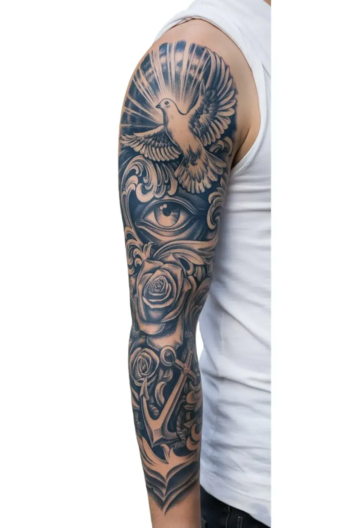 Medusa Takı güvencesiyle üretilen kol kaplama yarı kalıcı,geçici dövme, yüksek baskı kalitesi ve gerçekçi görünümü ile mağaza satışlarını artırmak için özel tasarlanmıştır. Festival, sahne, organizasyon ve perakende satış noktaları için ideal bir üründür. ✔ Gerçek dövme görünümü ✔ Kolun büyük bölümünü kaplayan özel tasarım ✔ Kolay uygulama – 30 saniyede hazır ✔ Suya dayanıklı ✔ 15–30 gün kalıcılık Satışlarımız TOPTANDIR.