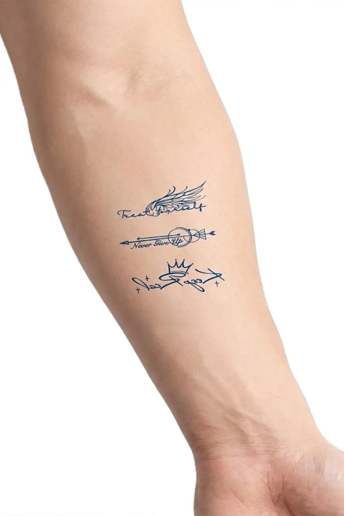 Sticker tattoo ve yarı kalıcı dövme ile tarzını yansıt. 1 aylık dövme, uygulaması kolay ve cilt dostudur. İlk başta renksiz görünür, sonradan kararan yapısıyla 24–48 saatte koyu mavi/siyah dövmeye dönüşür.