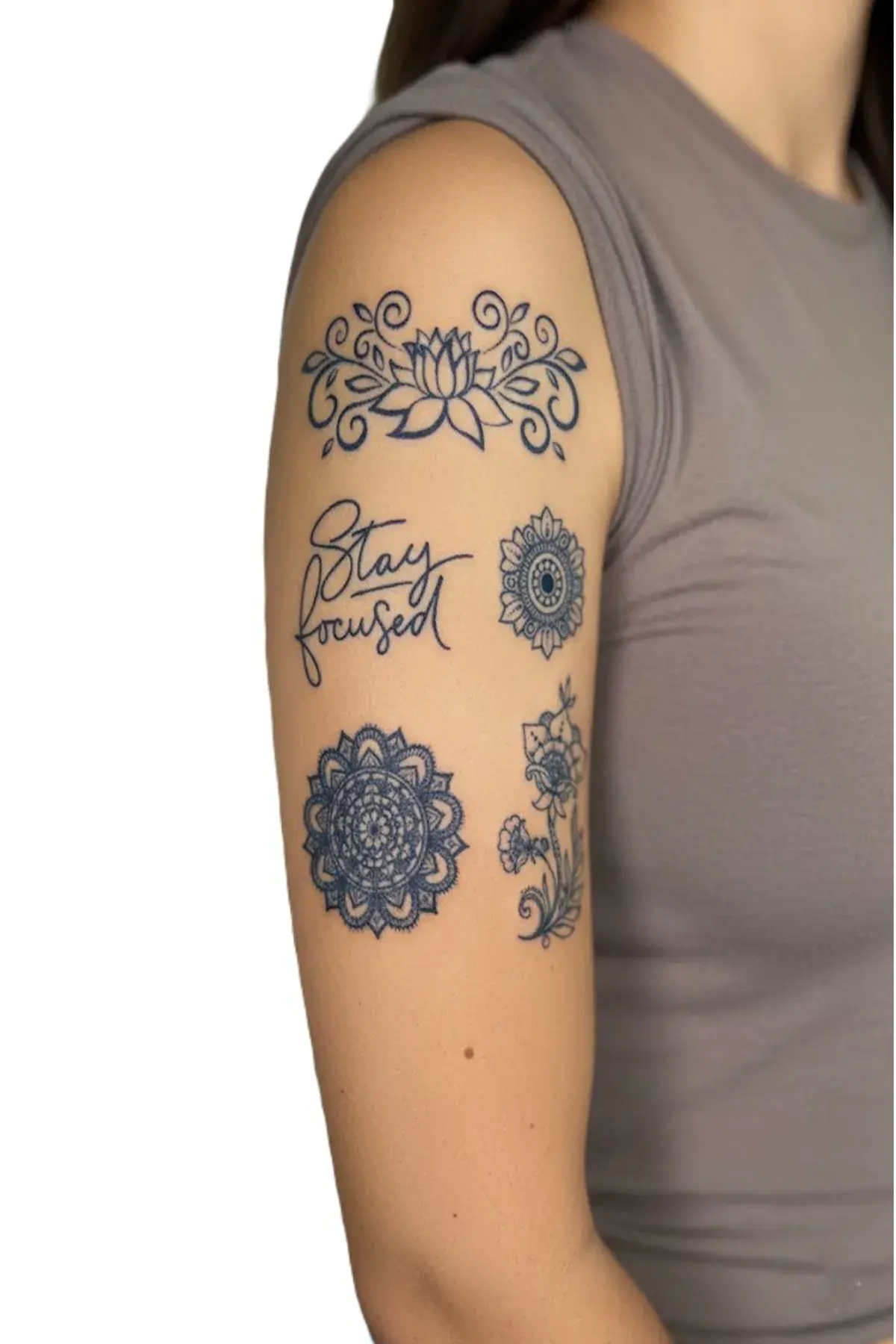 Sticker tattoo ve yarı kalıcı dövme ile tarzını yansıt. 1 aylık dövme, uygulaması kolay ve cilt dostudur. İlk başta renksiz görünür, sonradan kararan yapısıyla 24–48 saatte koyu mavi/siyah dövmeye dönüşür.