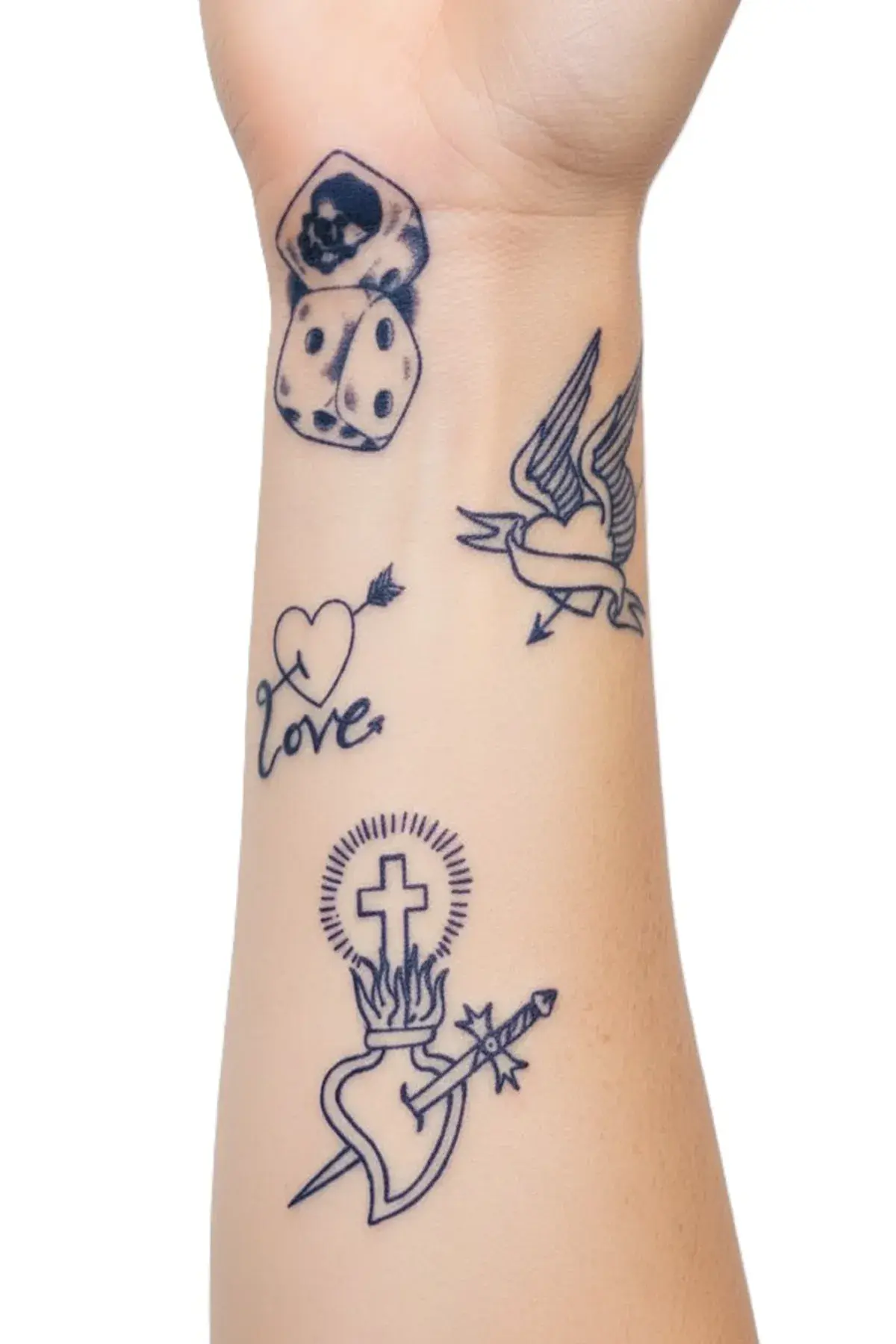 Sticker tattoo ve yarı kalıcı dövme ile tarzını yansıt. 1 aylık dövme, uygulaması kolay ve cilt dostudur. İlk başta renksiz görünür, sonradan kararan yapısıyla 24–48 saatte koyu mavi/siyah dövmeye dönüşür.